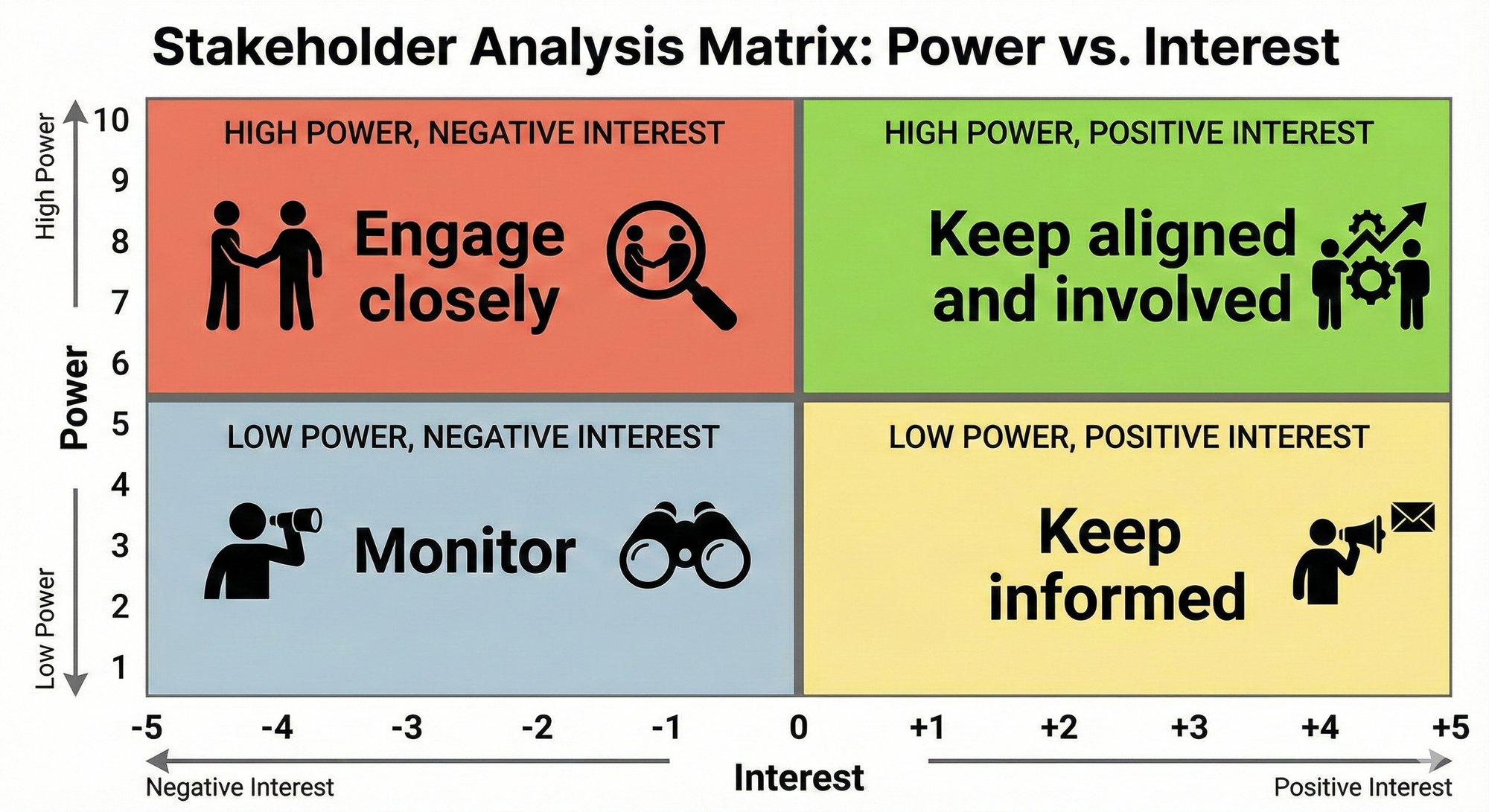- High Power, Negative Interest: Engage closely, understand their concerns and address them early